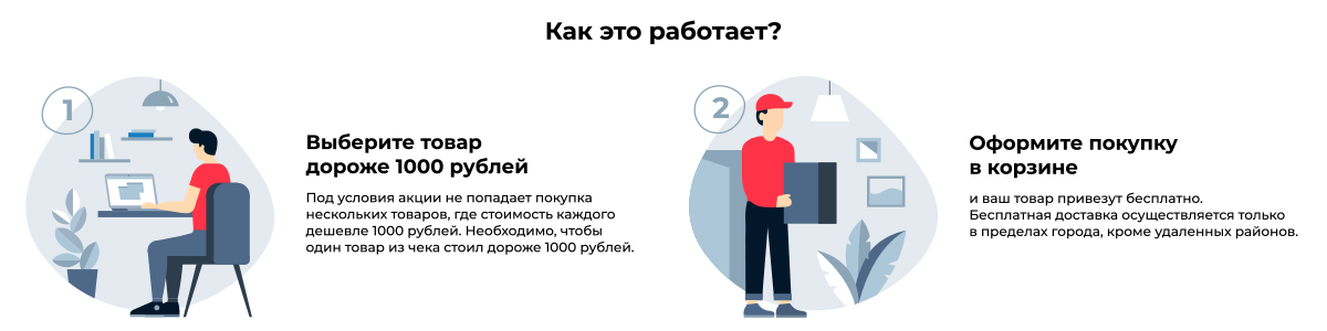 Бесплатная доставка осуществляется только в пределах города, кроме удаленных районов.